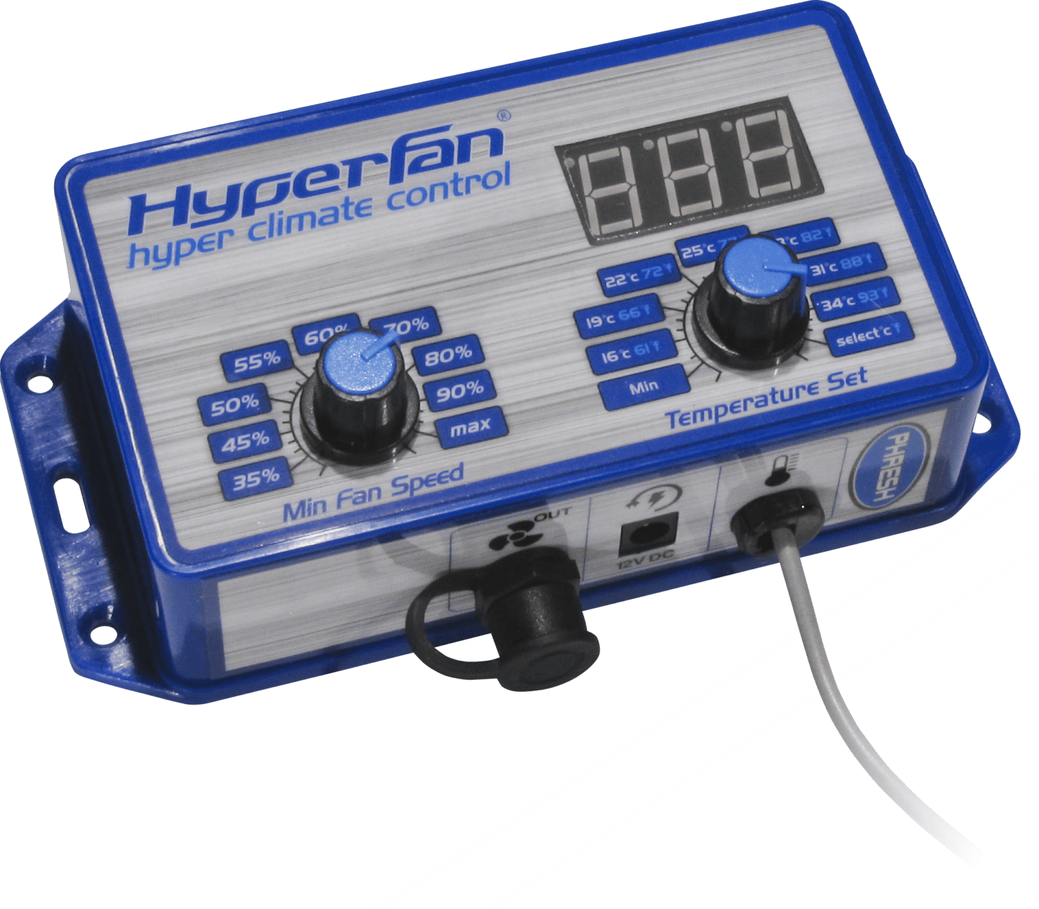 The all new Hyper Climate Control is designed to thermostatically adjust air-flow (via variable fan speed) into your grow space on both warm days and cold nights.